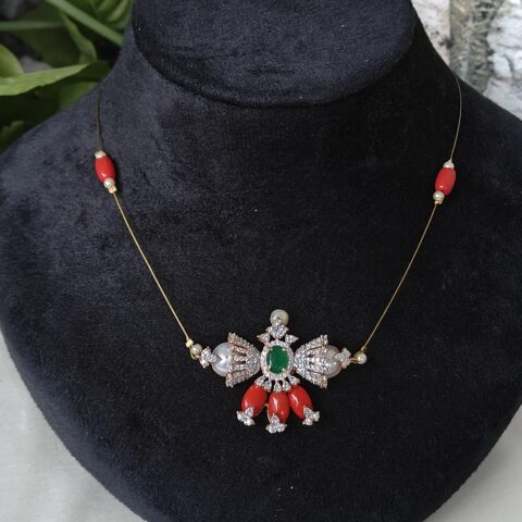 Invisible Peacock Chain with Earrings in Coral, Pink and Green Colours NFC15