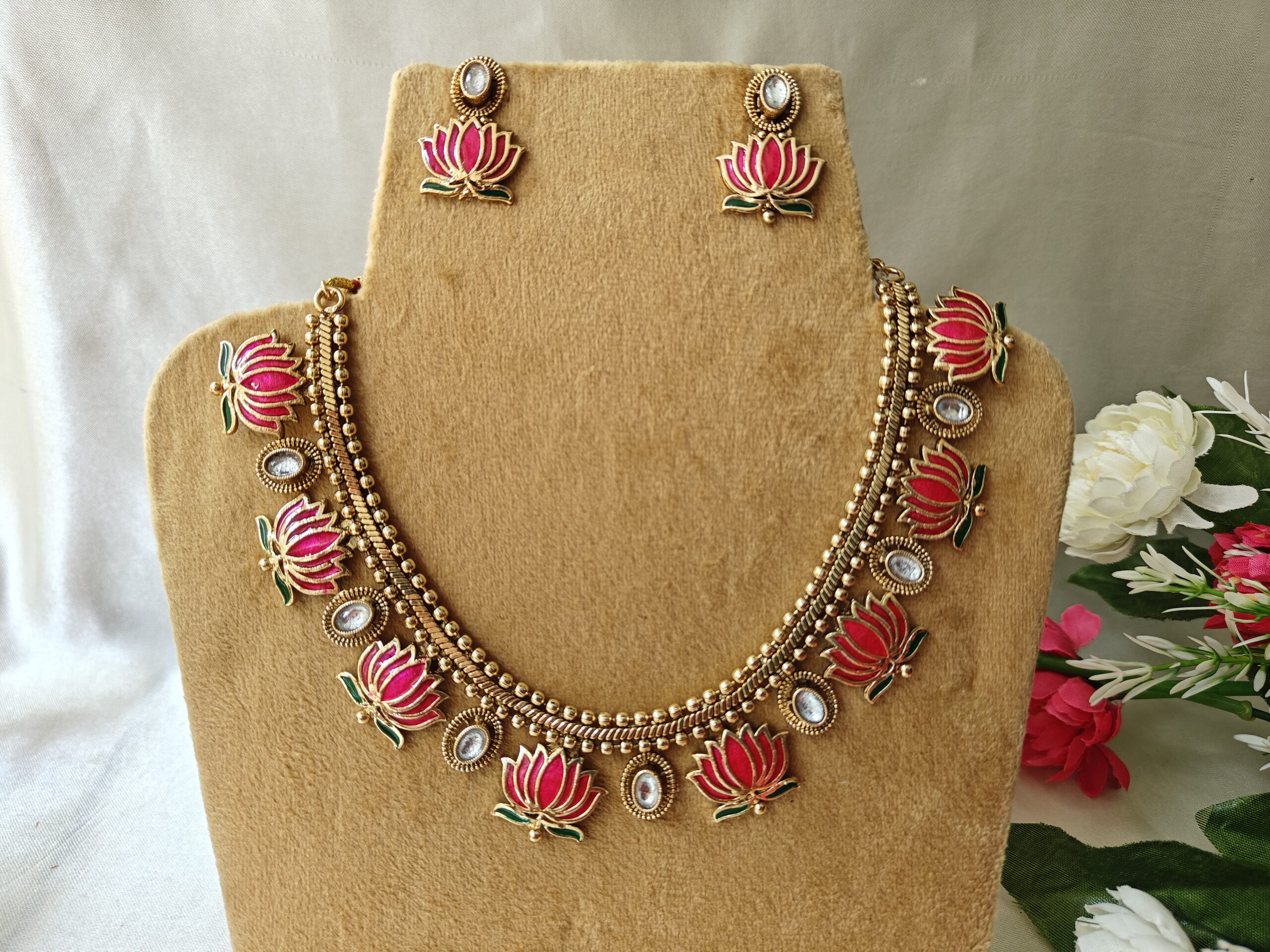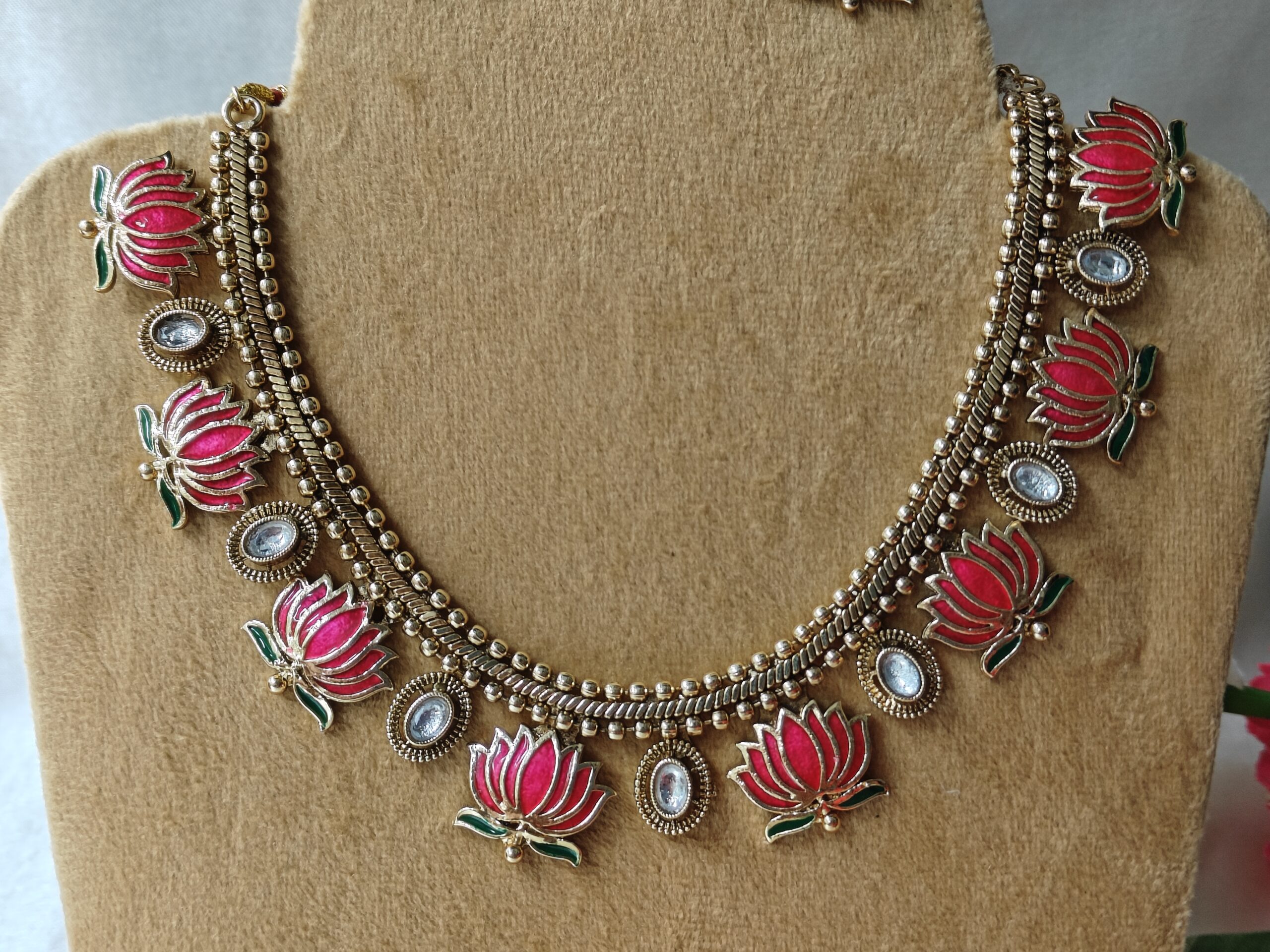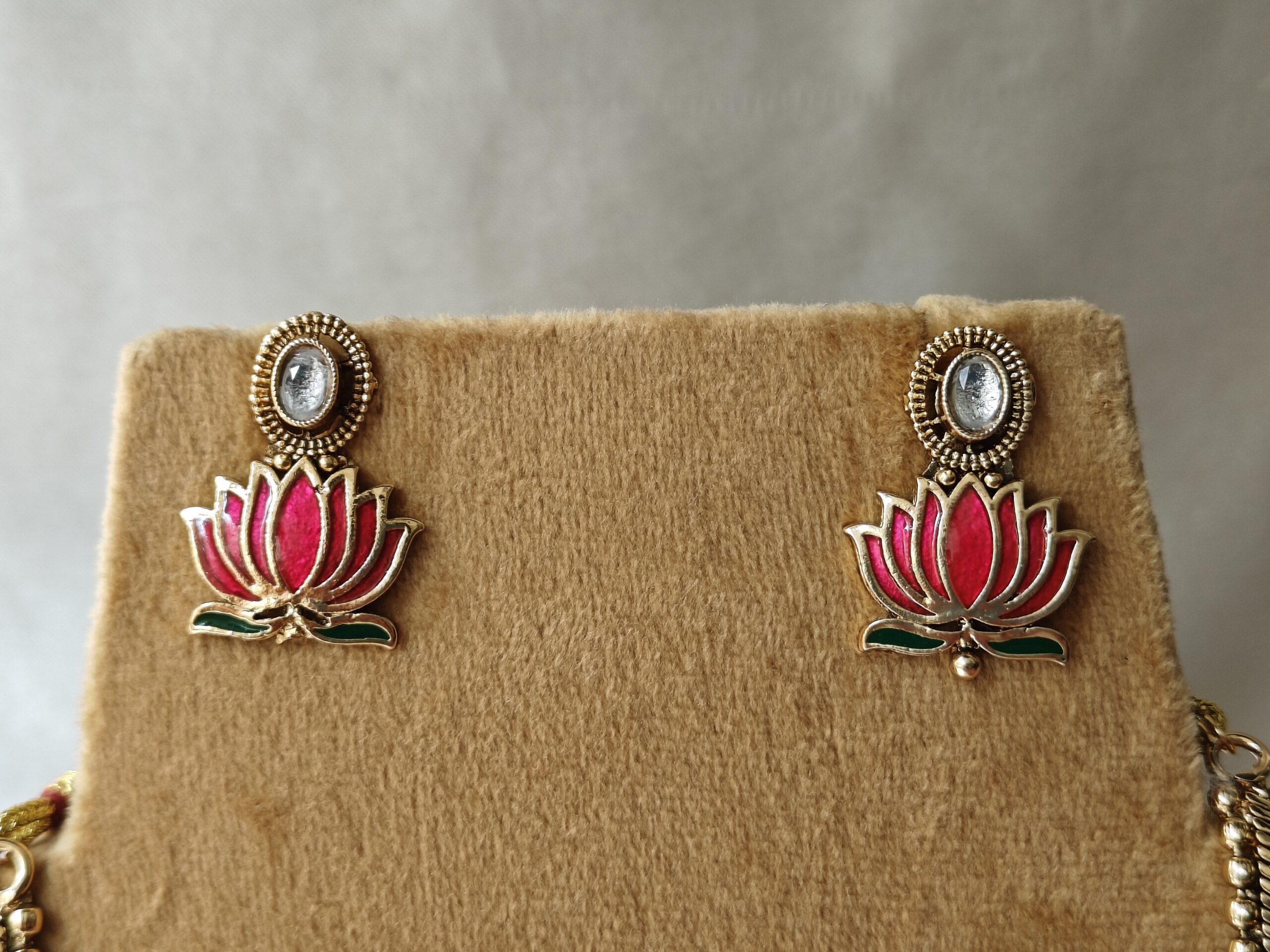 A beautifully crafted antique-finish necklace with intricate lotus design — timeless, elegant, and deeply rooted in tradition.