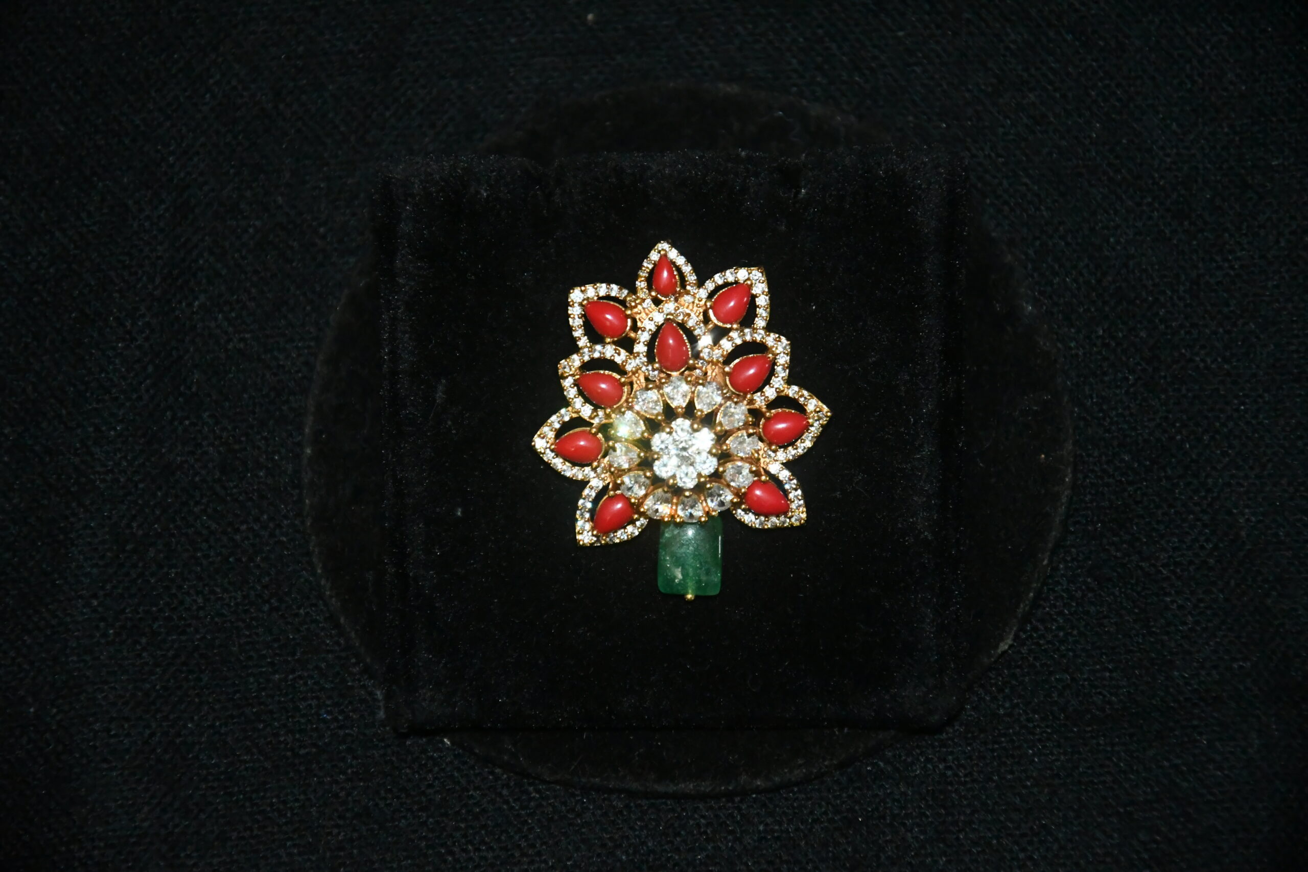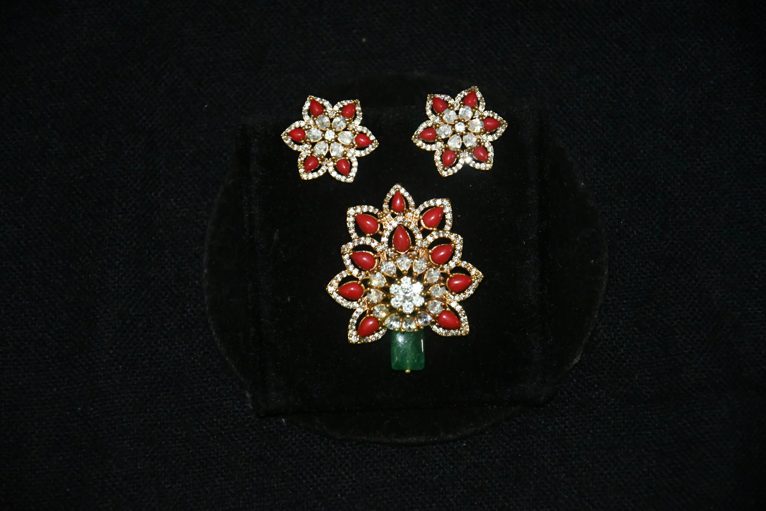 The Coral cz pendant with earrings NFP15 is a premium jewelry piece that blends artistic craftsmanship with traditional design. Its visual appeal makes it suitable for festive and everyday looks.