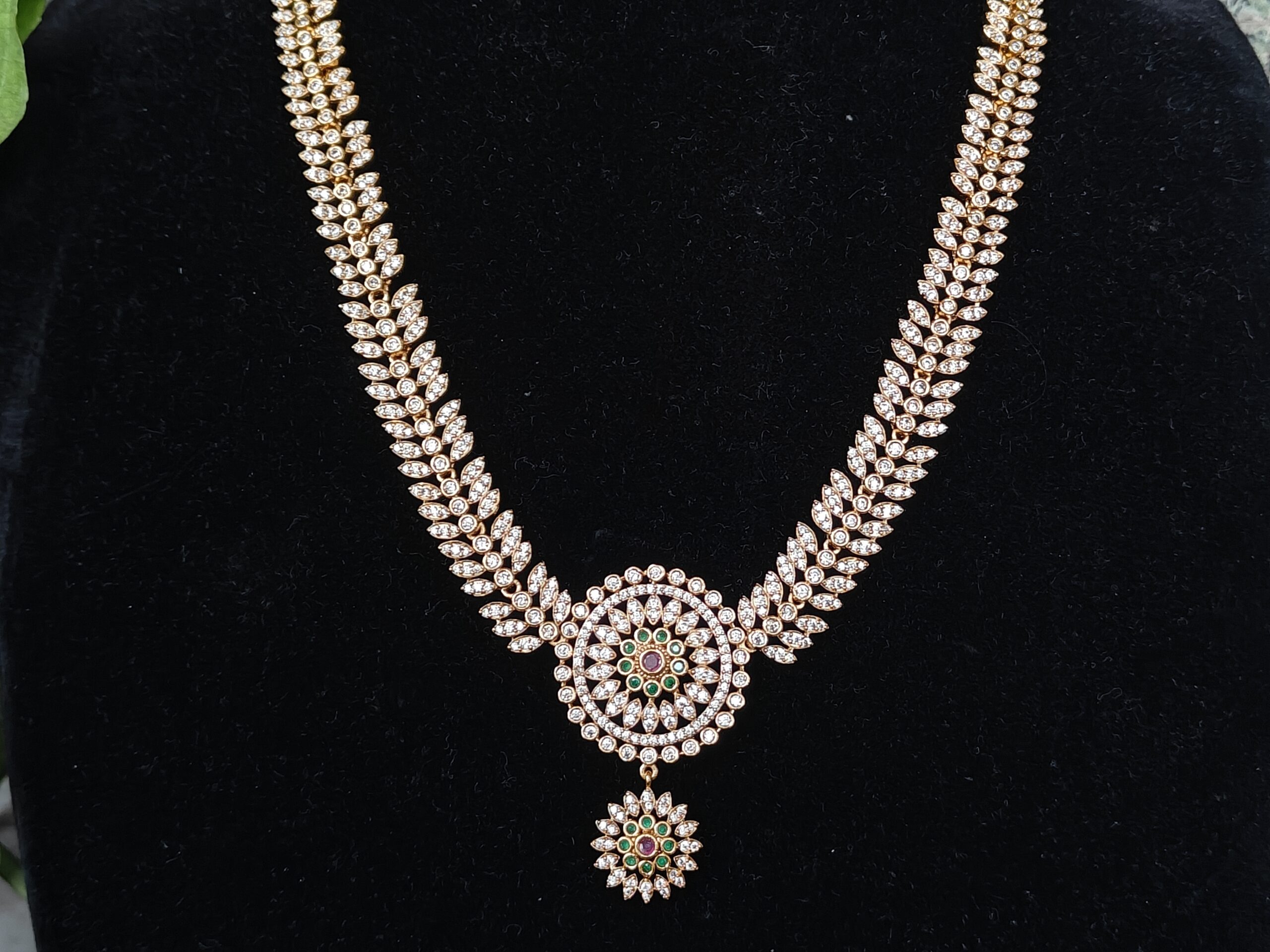 A graceful CZ long necklace (NFN191) adorned with high-quality cubic zirconia stones, ideal for weddings, celebrations, or as a statement piece.