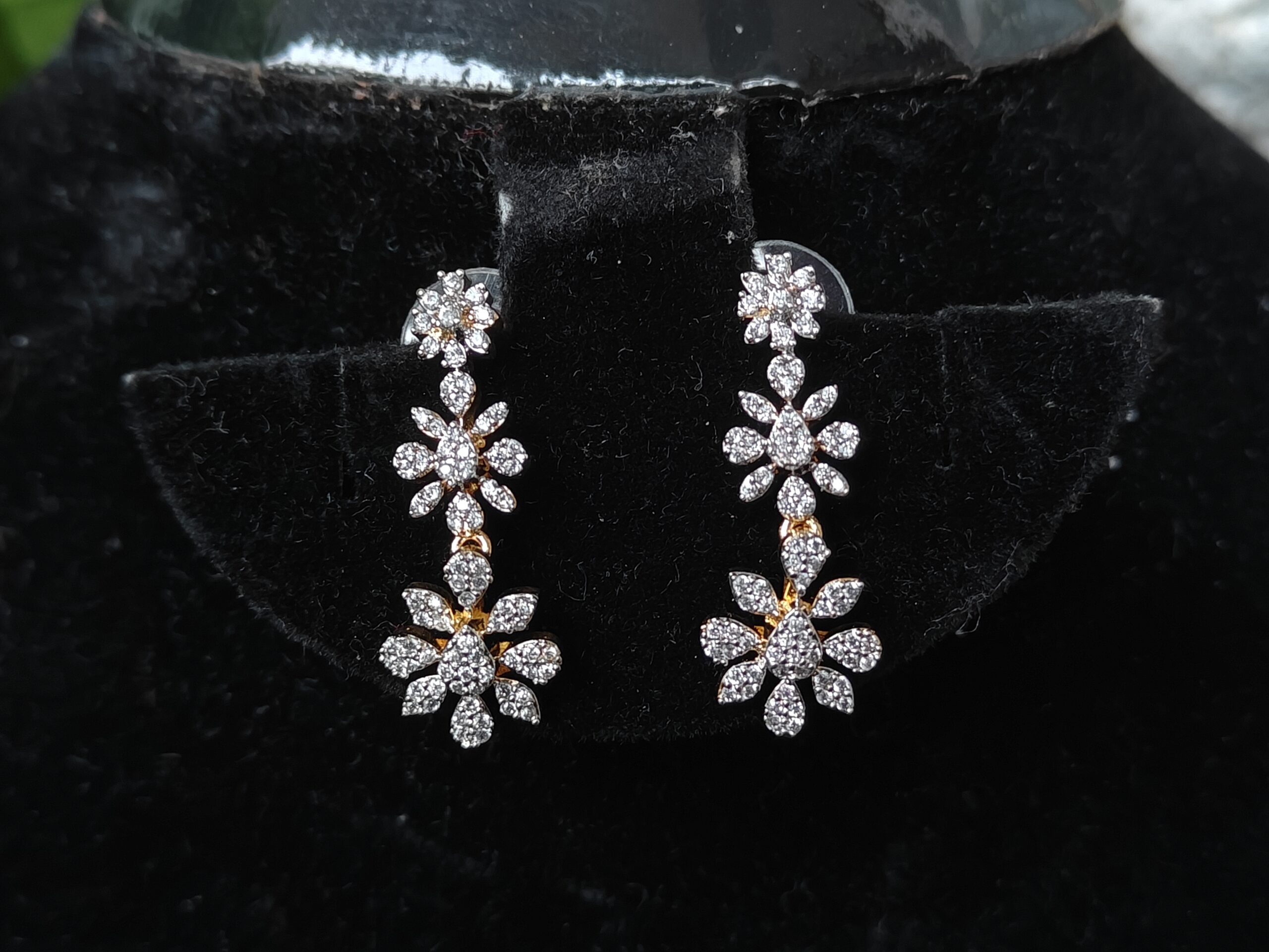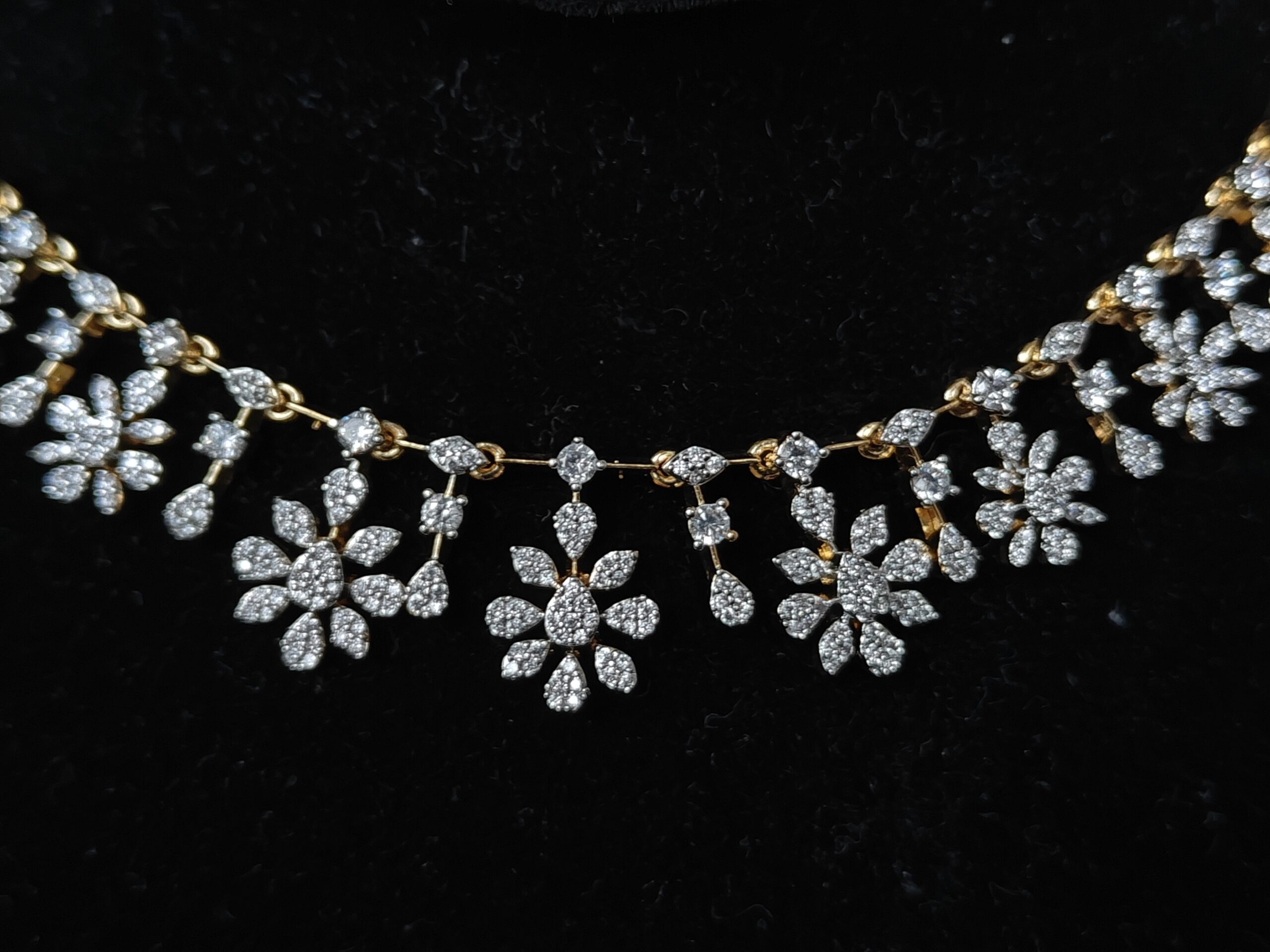 A beautifully designed diamond-look flower necklace (NFN193) featuring intricate floral motifs and sparkling stones. Lightweight, classy, and ideal for all occasions.