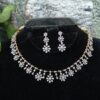The Diamond Necklace with Centre Big Flower NFN194 is crafted to make a statement with its striking central floral motif. Designed with premium quality cubic zirconia stones, this necklace offers a rich diamond-like shine that elevates any outfit.