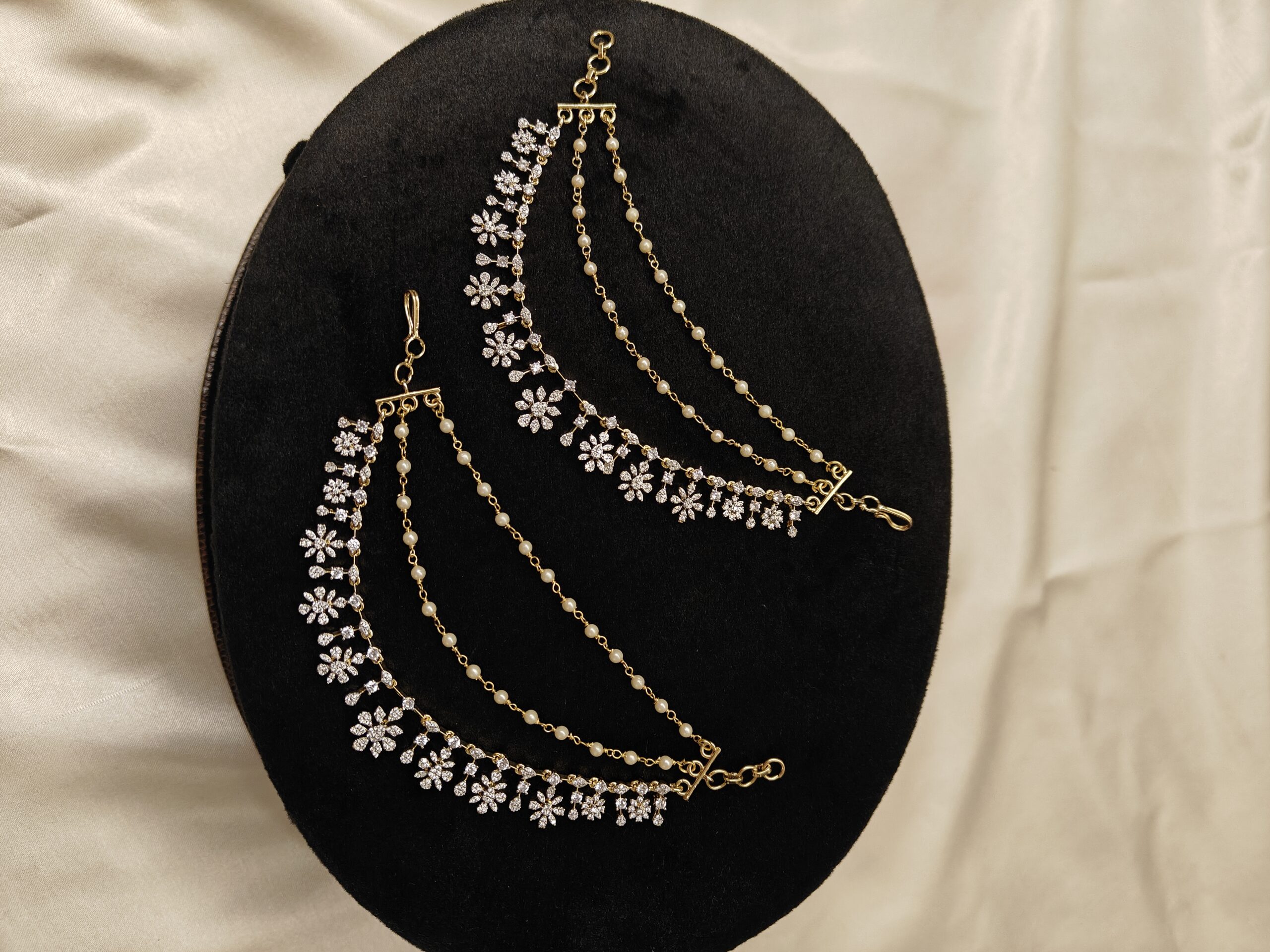 The Diamond Pearl 3 Line Champasavaralu (NFHA69) is a premium ear chain designed to enhance and support heavy traditional earrings.