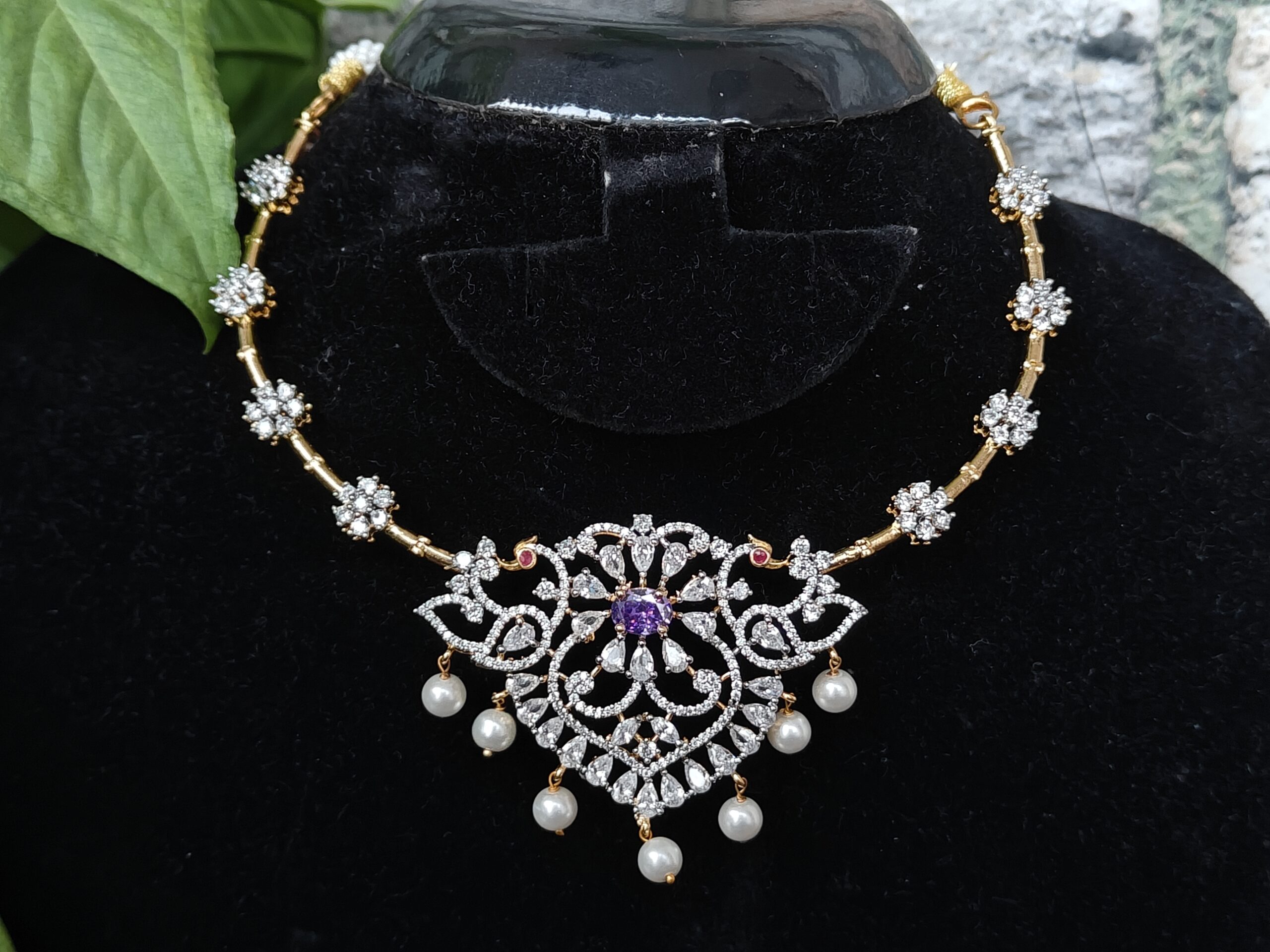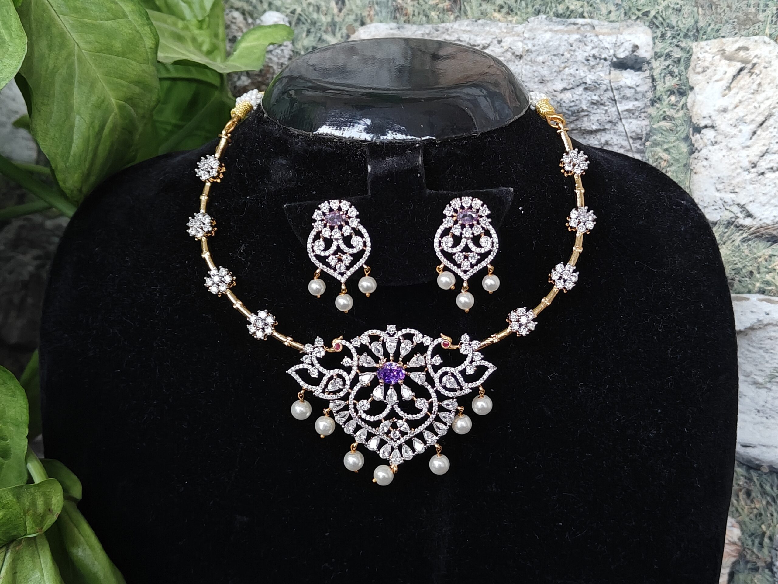 Tags: bridal necklace setDesigner Jewellerydiamond look jewellerydiamond look necklaceEthnic JewelleryFestive JewelleryGold Plated JewelleryHandcrafted JewelleryIndian jewellerykante necklace setnecklace with earringsNFN161Vtraditional necklaceviolet kante necklaceViolet Stone NecklaceWedding Jewellery
