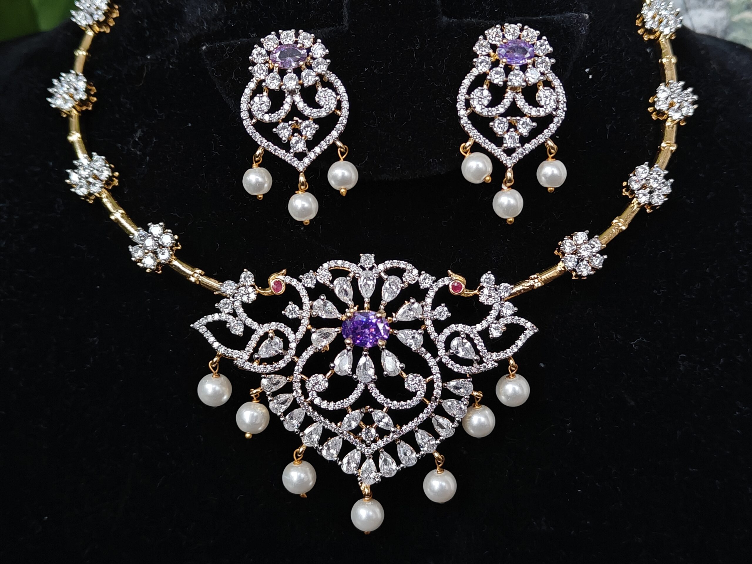 Be the first to review “Diamond Violet Kante Necklace With Earrings NFN161V” Cancel reply