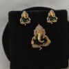 Bring home blessings and beauty with this elegant Ganesh pendant set. Designed with a detailed Lord Ganesha motif and studded with sparkling pink stones, this gold-plated set comes with matching earrings for a complete festive look. Perfect for traditional functions, poojas, or as a thoughtful gift.