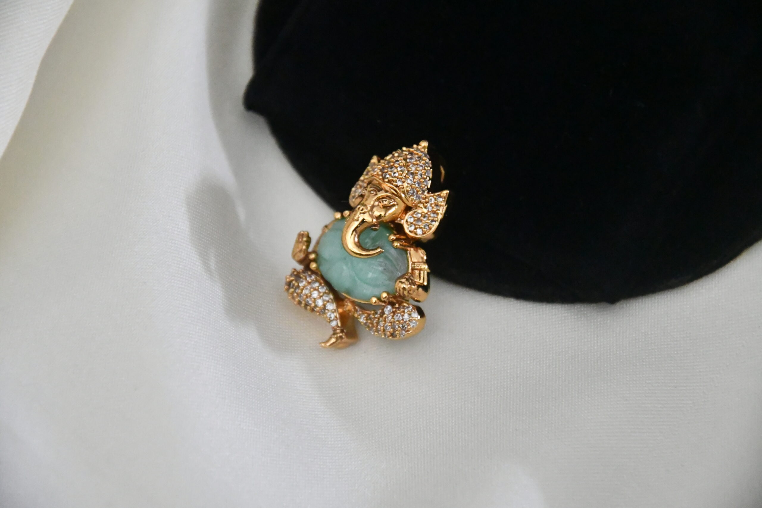 The Ganesha cz pendant in light blue NFP18LB is a premium jewelry piece that blends artistic craftsmanship with traditional design. Its visual appeal makes it suitable for festive and everyday looks.