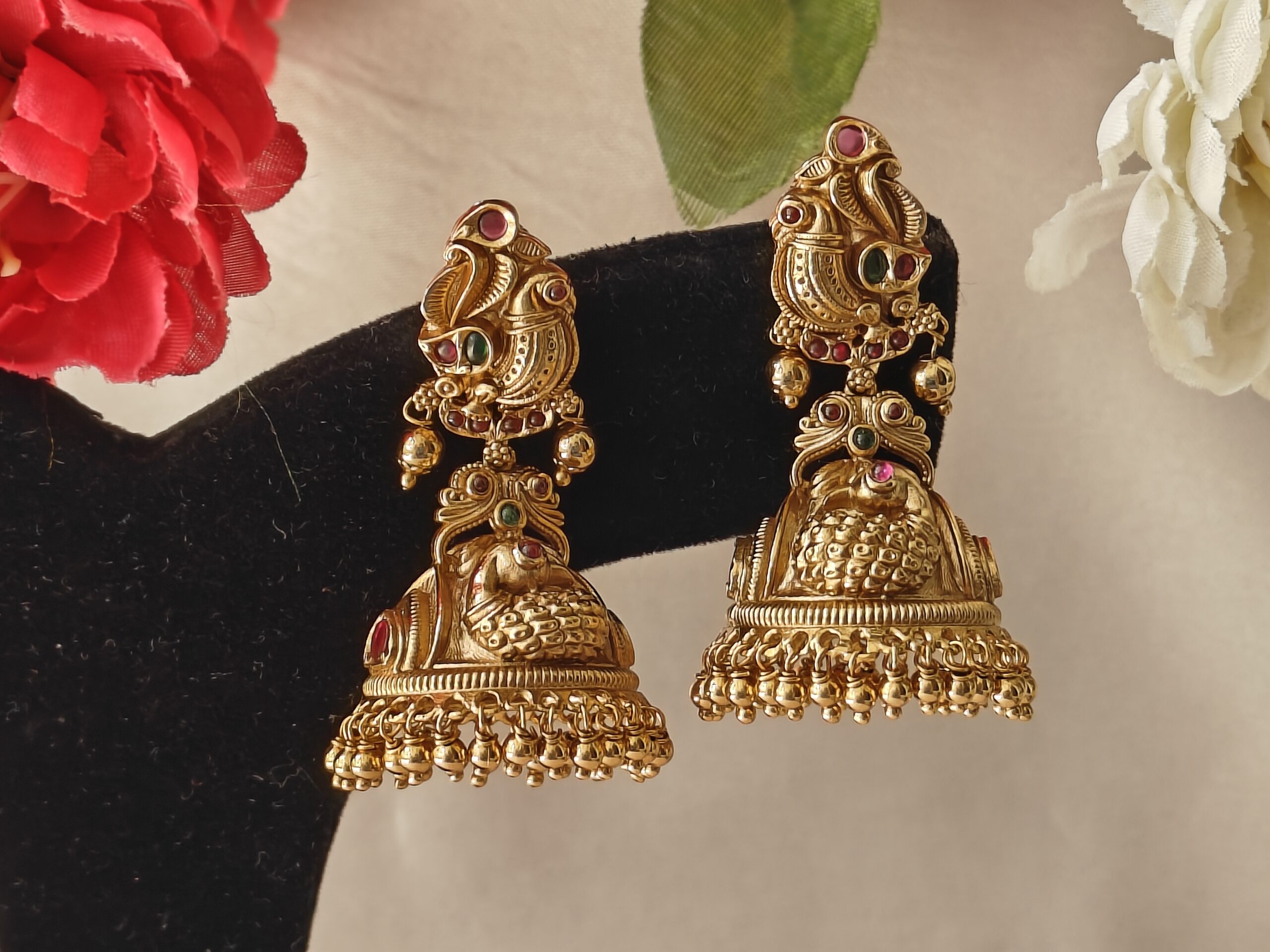 Celebrate heritage artistry with our Peacock Nakshi Earrings (NFE49) — a timeless piece inspired by the grandeur of South Indian temple jewellery.